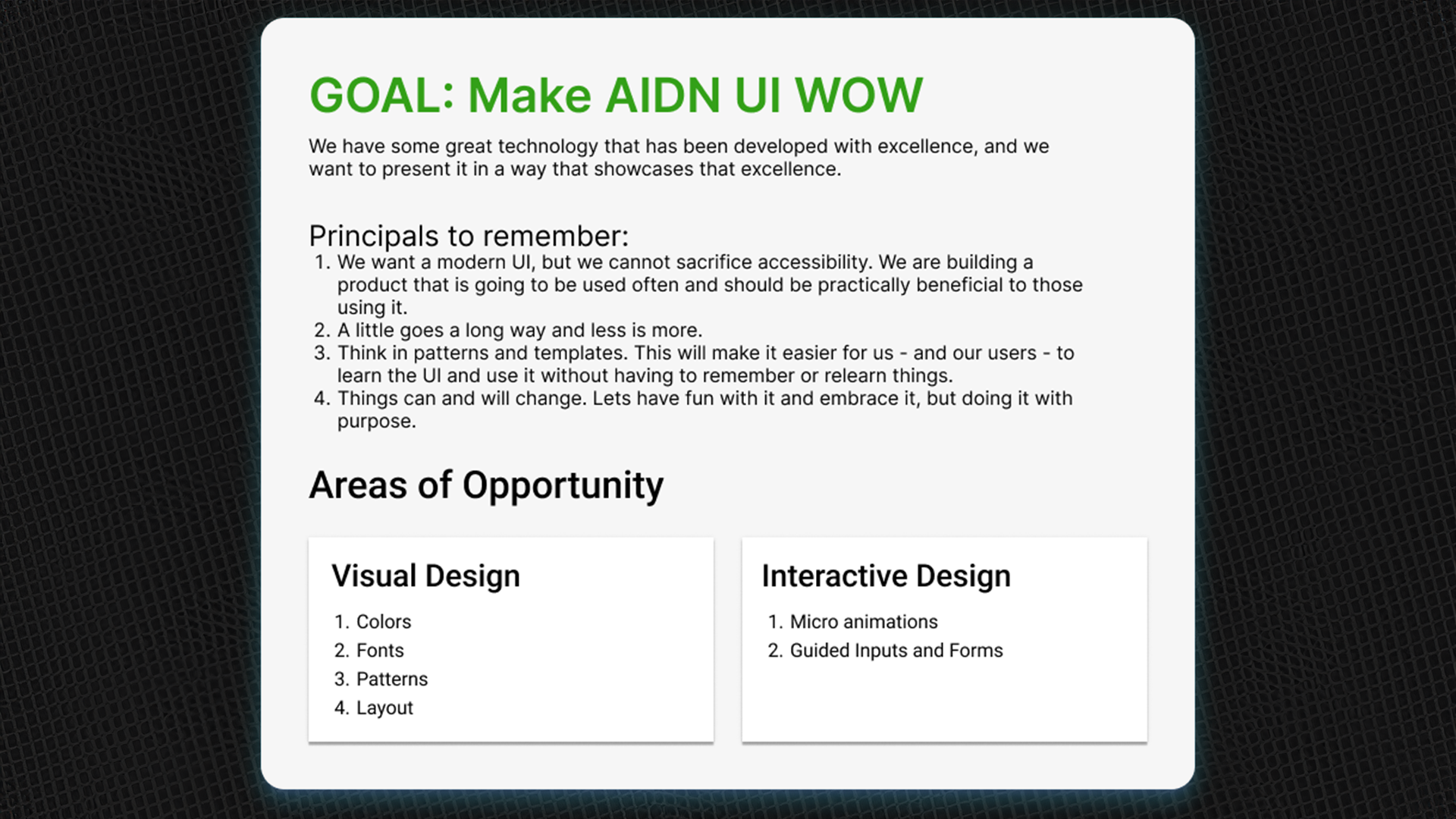 UI, interactions, and more — establishing a design system and visual language for AIDN.