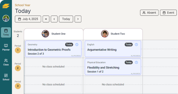 Families needed a single place to plan lessons across multiple children, automatically handle attendance, and stay aligned with their state's requirements. Existing tools were either rigid (built for traditional schools) or too lightweight, forcing parents into spreadsheets and ad-hoc documents.