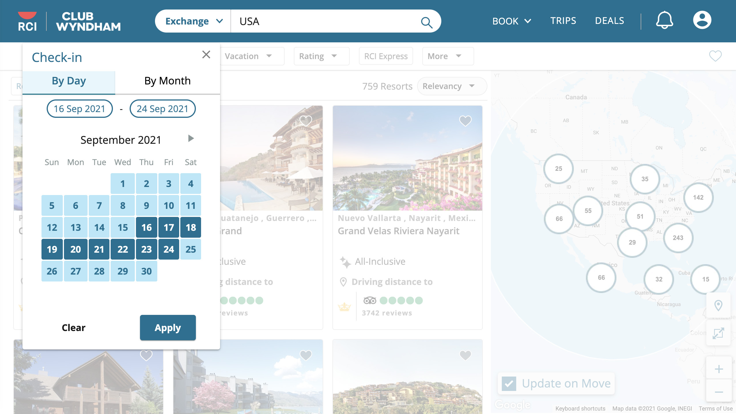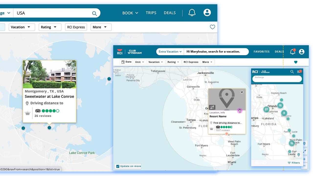 The map experience emphasized exploration with clustering to reduce clutter and interactive pins to surface resort cards at closer zoom levels.
